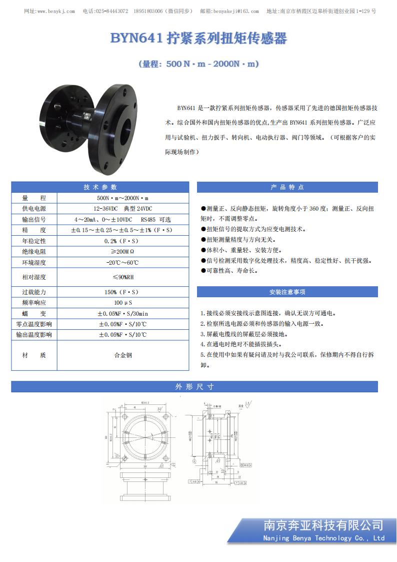 BYN641 是一款拧紧系列扭矩传感器,传感器采用了先进的德国扭矩传感器技术。综合国外和国内扭矩传感器的优点,生产出 BYN641 系列扭矩传感器。广泛应用与试验机、扭力扳手、转向机、电动执行器、阀门等领域。(可根据客户的实际现场制作)