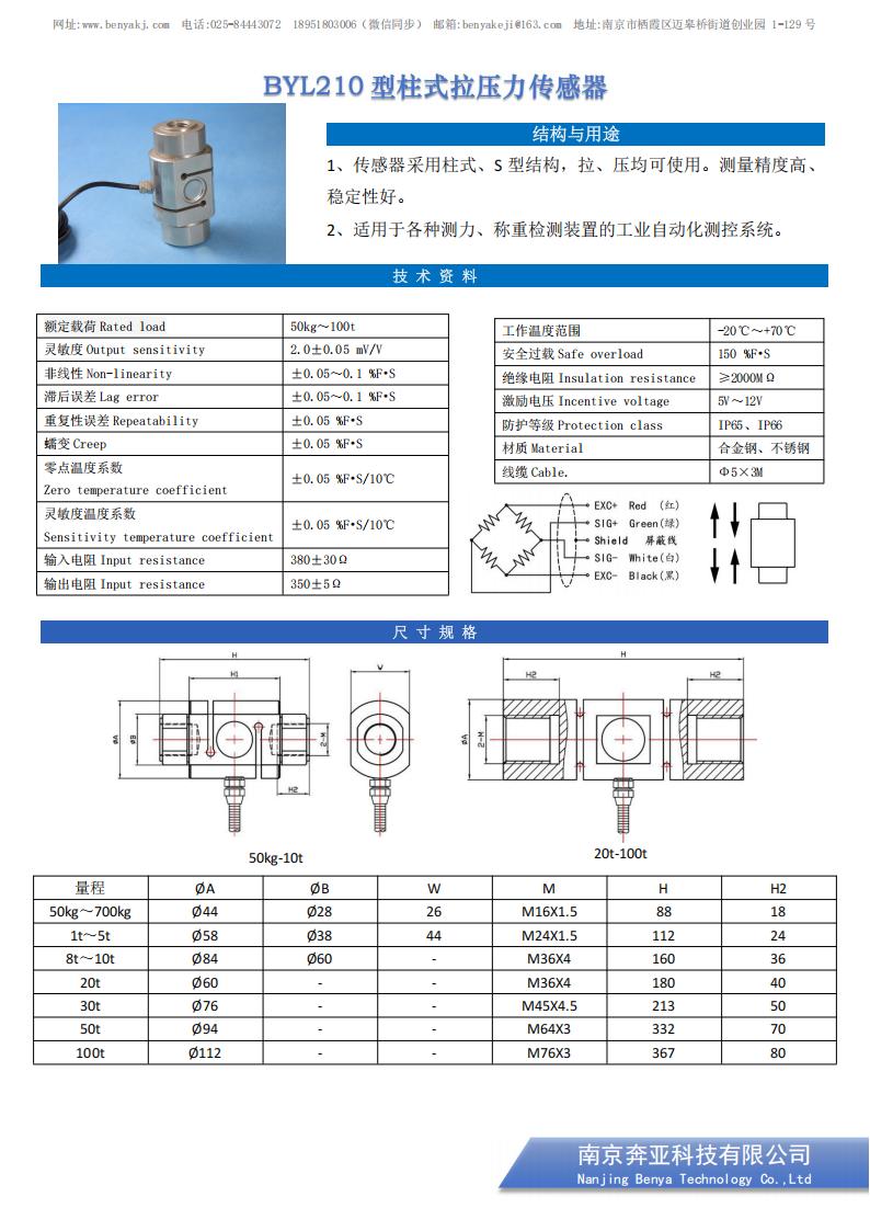 BYL210型柱式拉压力传感器
