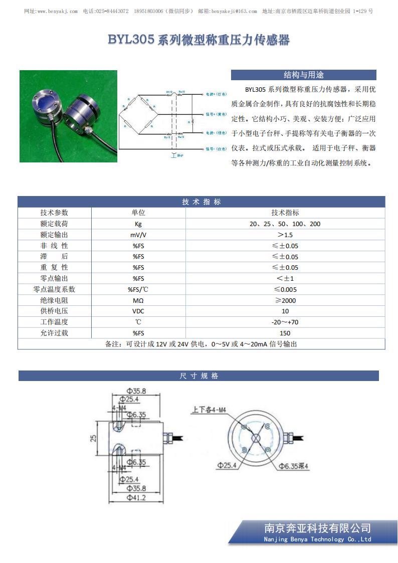 BYL305系列微型称重压力传感器