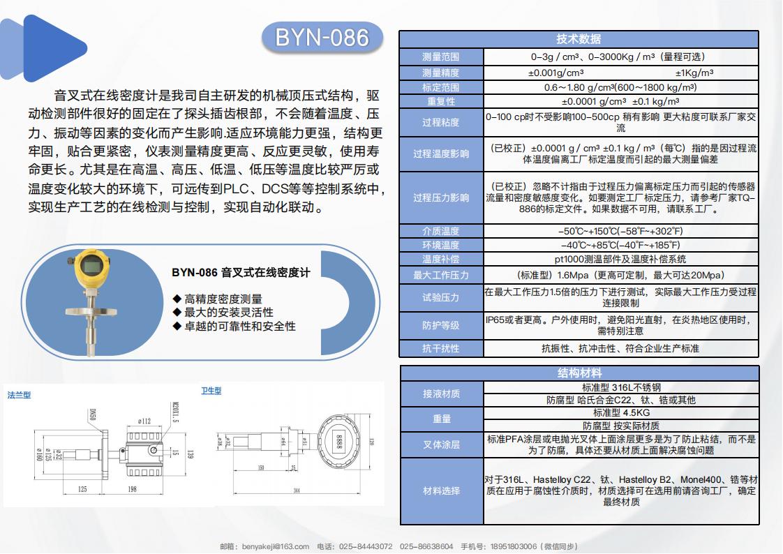 测量方式是传感器测量介质的手段方式,在所有传感器中,单直管密度浓度计的独特性能在测量含有不溶物质(例如:固体颗粒)和气泡时,通畅性降低了不溶物质和气泡对它的干扰。而振动管本身的质量在出厂的前就已经确定,而振动管内液体的质量是由管内液体密度或浓度和液体体积所决定,管的大小和体积已经确定,振动管内液体的密度或浓度与振动频率成相关性。信号通过后置电连接器输出到处理单元。