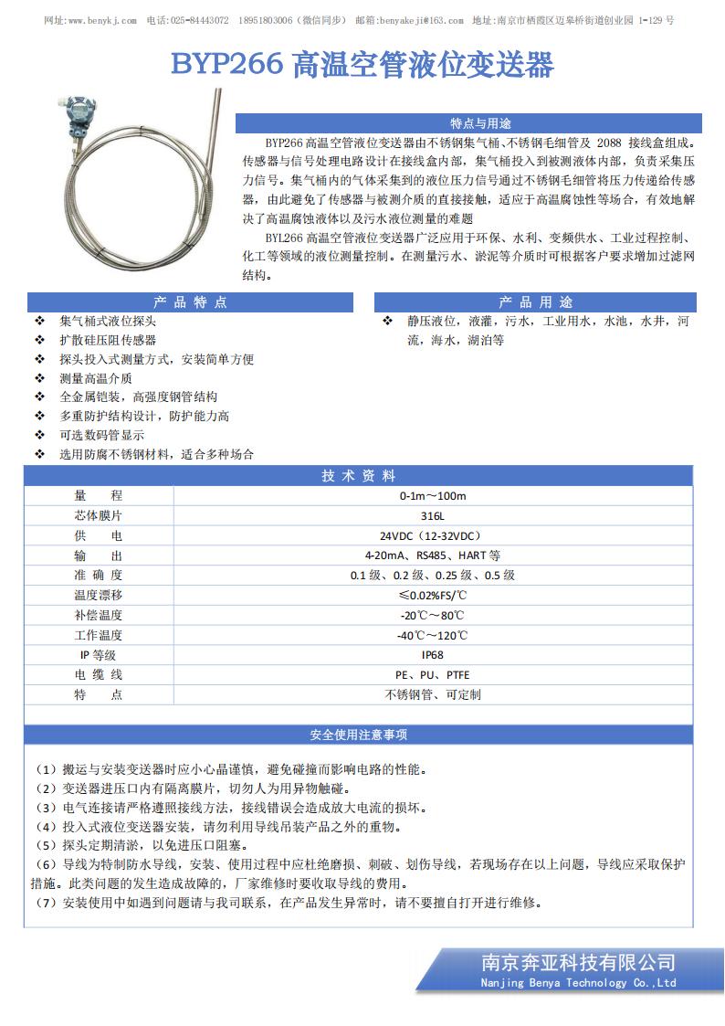 BYP266 高温空管液位变送器
