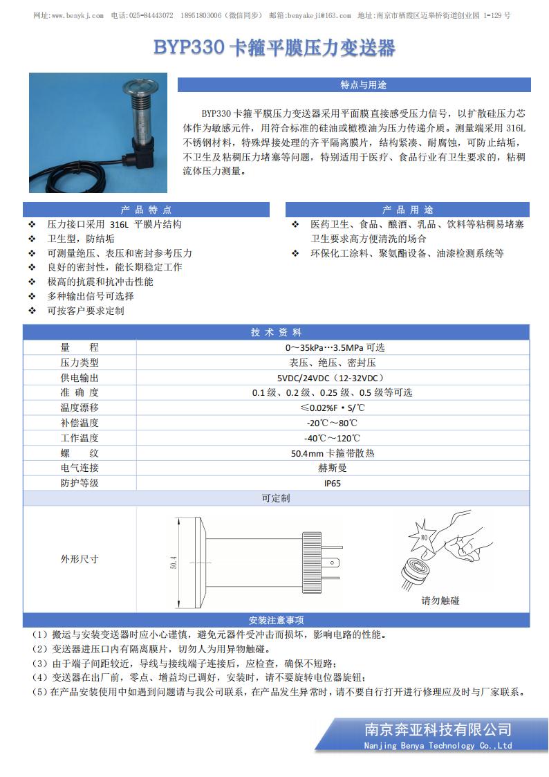 - 查看详情 + 上一篇 BYP350 平膜压力变送器
