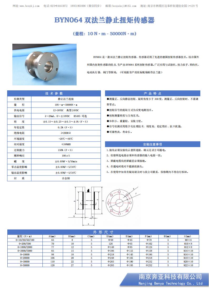 BYN064 是一款双法兰静止扭矩传感器,传感器采用了先进的德国扭矩传感器技术。综合国外和国内扭矩传感器的优点,生产出 BYN064 系列扭矩传感器。广泛应用与试验机、扭力扳手、转向机、电动执行器、阀门等领域。(可根据客户的实际现场制作法兰盘)
